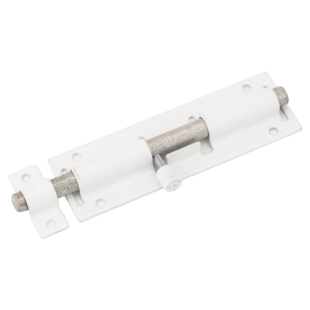 Засов накладной для деревянных и металлических дверей. Материал - сталь, полимерное покрытие. Габариты корпуса - 100х30 мм, 4 крепежных отверстия. Цилиндрический ригель диаметром 8 мм с вылетом 20 мм. В комплекте ответная планка 12х30 мм.